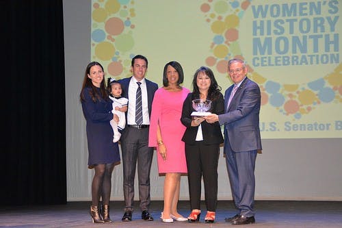 "I'm glad to celebrate Women's History Month with all of you and today marks our eighth annual Evangelina Distinction Trailblazer Awards. I want to thank all of the leaders, volunteers and organizations — some including Girl Scouts of New Jersey, Women's Council of Realtors, New Jersey Coalition Against Sexual Assault and so many others who have joined us to make this celebration so special," said Sen. Menendez. "I would like to give a warm welcome to this year's keynote speaker Lieutenant Governor Sheila Oliver, a trailblazer in her own right and the first African American woman to serve as governor of New Jersey. Today we honor six incredible women across New Jersey for the Distinction Trailblazer Awards. They are Amy Anderson, the New Jersey Education Association (NJEA) Teacher of the Year; Wilda Diaz, Mayor of Perth Amboy; Uyen Khoung, Co-Founder of Action Together; Audrey Meyers, president and CEO of Valley Health System; and Tiffany Williams, founder of The Esther Project Rev."