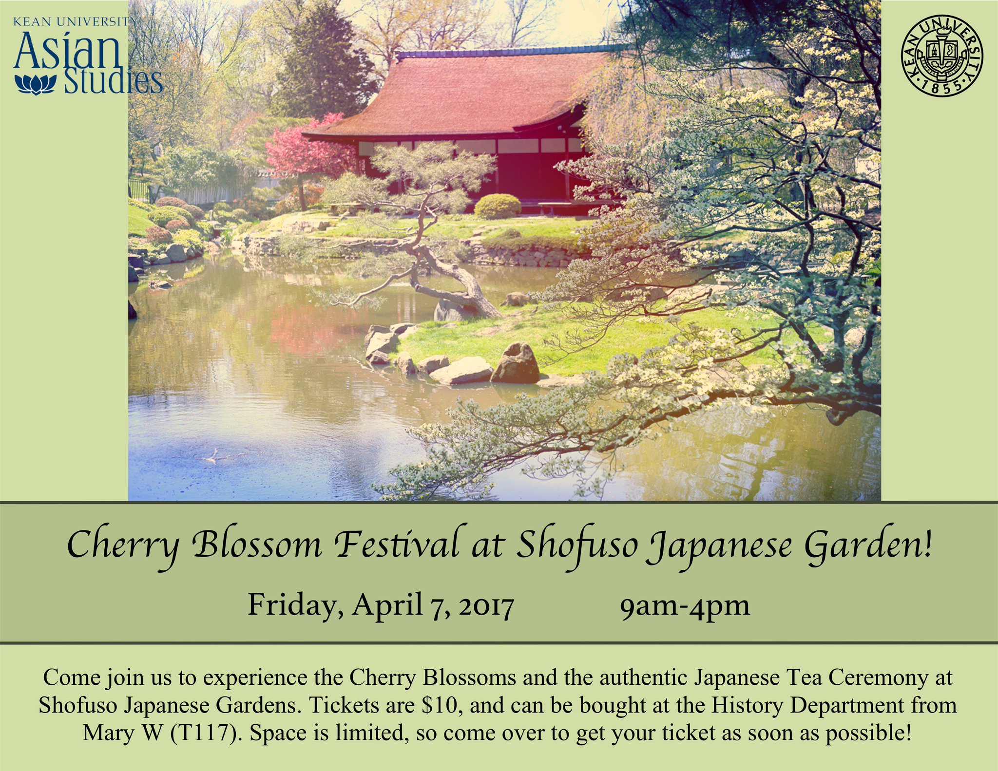 Want to travel to Philadelphia and see the Cherry Blossom Festival for only $10? The Asian Studies Department will be taking a field trip to Shofuso Japanese Garden in Philadelphia, Pennsylvania on Friday, April 7, 2017 from 9 a.m. to 4 p.m.
