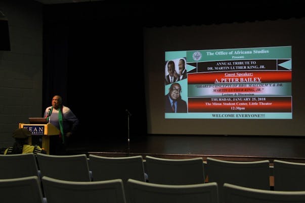 On Jan. 25, 2017 Malcolm X associate, A. Peter Bailey, gave an insightful presentation discussing the similarities between Malcolm X and Martin Luther King Jr. at the Miron Student Center Little Theater.