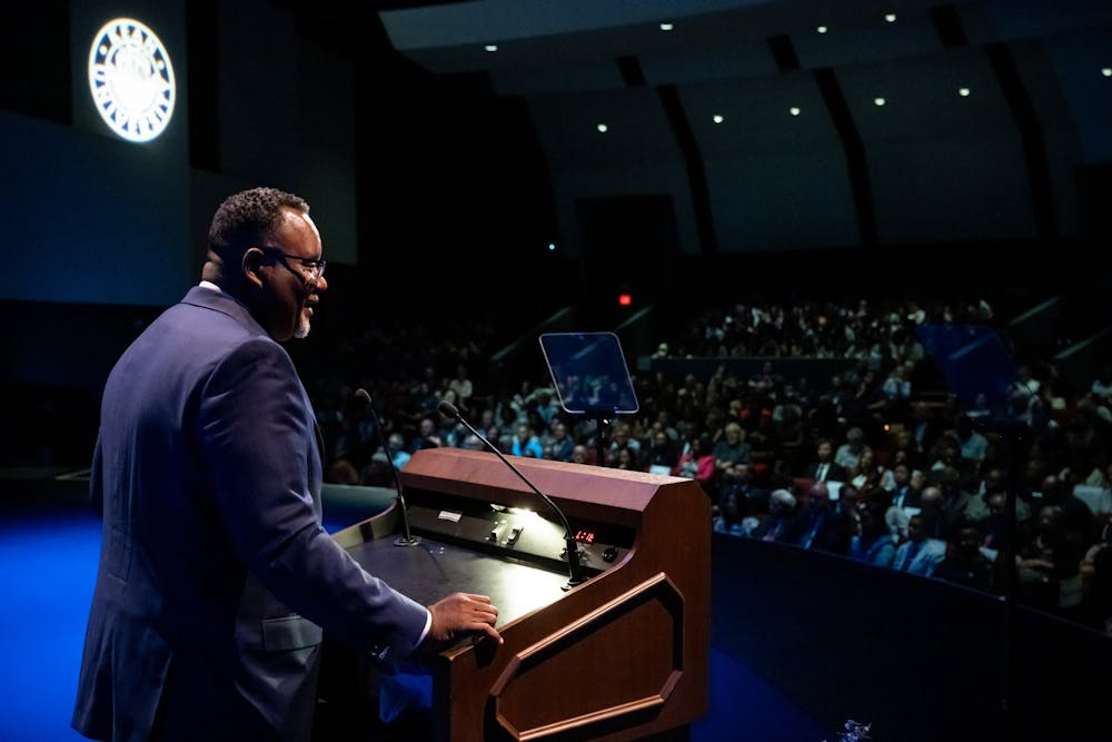 While many watched the speech in the theater, some attendees were directed to an overflow room in the Center for Academic Success, and others were able to watch live via livestream.