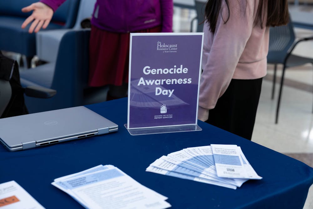 On Tuesday, December 9, Kean University’s Holocaust Resource Center and Human Rights Institute hosted a Genocide Prevention and Awareness Day tabling event, transforming the Miron Student Center Atrium into a space for reflection, learning, and community engagement. The event honored the International Day of Commemoration and Dignity of the Victims of the Crime of Genocide, observed annually on December 9, the same date the United Nations adopted the Genocide Convention in 1948.
